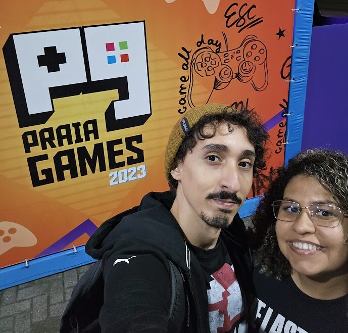 Participação no PG Games, o maior evento geek da Baixada Santista. A visita foi estratégica para observar tendências, mapear oportunidades de mercado e fortalecer conexões com o ecossistema regional de jogos e cultura pop.